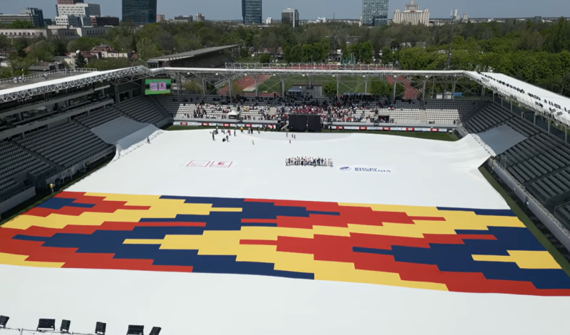 On the day of the record attempt, more than 120 volunteers from rugby clubs in Bucharest gathered at Arcul de Triumf National Rugby Stadium to unroll the T-shirt on the field, which took an entire day.