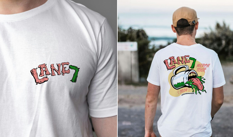 In partnership with Supacolor, Lane Seven Apparel launched the L7 Merch Tour campaign, coinciding with its presence as SXSW’s official T-shirt sponsor. To get customers involved in the experience, Lane Seven asked them to submit a design to be featured on official tour merch. Among the 20 entries Lane Seven received, one in particular stood out. Brody Driscoll, owner of Dallas-Fort Worth, Texas-based Totally Normal Design, won the contest with a punk-rock-inspired submission.